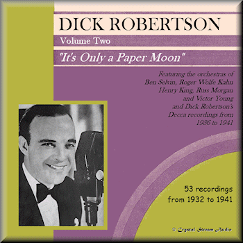 | DICK ROBERTSON Volume Two 'It's Only a Paper Moon' Recordings from 1932 to 1941 | ©Crystal Stream Audio 2021 IDCD453 Total playing time: 79.48 IDCD454 Total playing time: 77.43 Double CD |